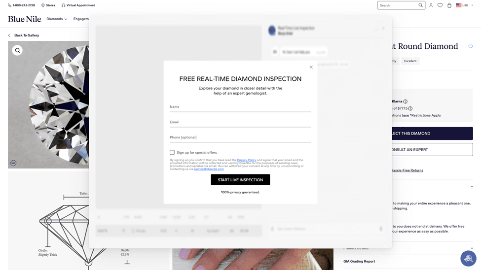 Our Editor personally mystery shopped the free real time diamond inspection on Blue Nile
