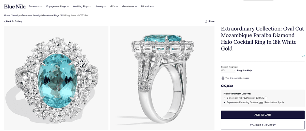 Of course, we understand few of our readers will be shopping for diamonds at this price. Our analysts felt it was important, however, to make buyers aware of the similar positioning of Blue Nile with Cartier, Tiffany or the high end jeweler or Rolex dealer in your community.