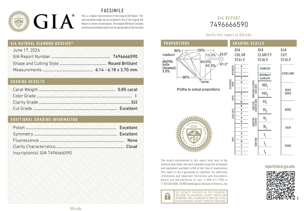 The diamond can be the most expensive part of any diamond engagement ring purchase so it is important to take the time to research and learn about the 4C’s. Our Editor explains in detail how to understand the GIA 2.51 ct Emerald Cut certificate below: