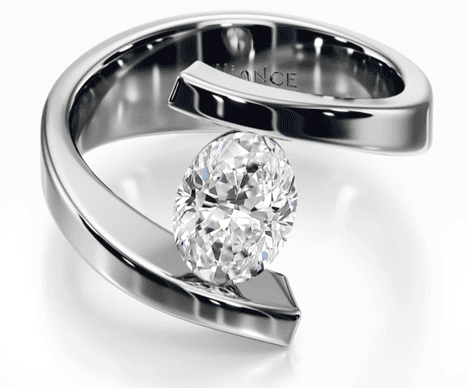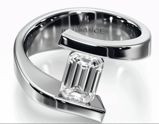 The majority of diamond engagement ring shoppers are very traditional. More than half will want some variation of a solitaire or a halo ring. Our Editor and team can attest to this fact from their own work and experience. Their experience has confirmed that @20% of all sales for online jewelers will be only the diamond. The fact that the next 50% are focused narrowly in two design categories, solitaires and halos is amply reflected in the styles and designs on Brilliance. We counted 253 different solitaire styles in our survey. But Brilliance doesn’t just offer simple solitaires in different widths. They offer many unique and elegant cutting edge solitaires like this prongless dazzler Bypass Ring: