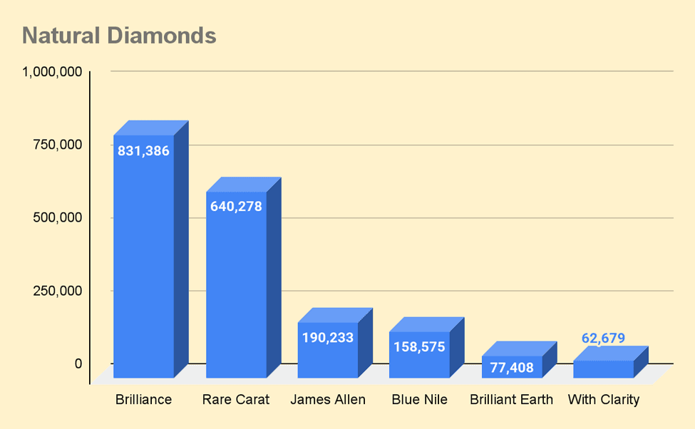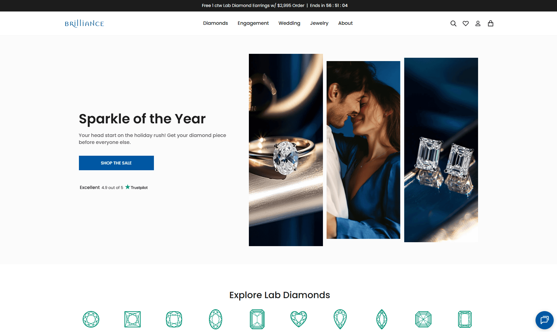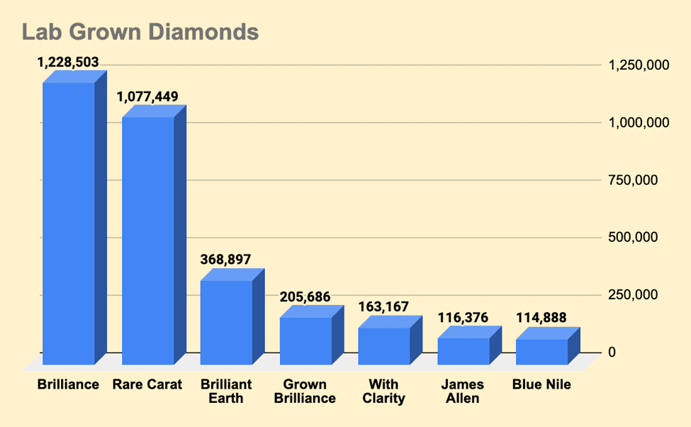 Brilliance has more lab grown diamonds for sale than of the other jewelers in our survey (all data as of July 2025).