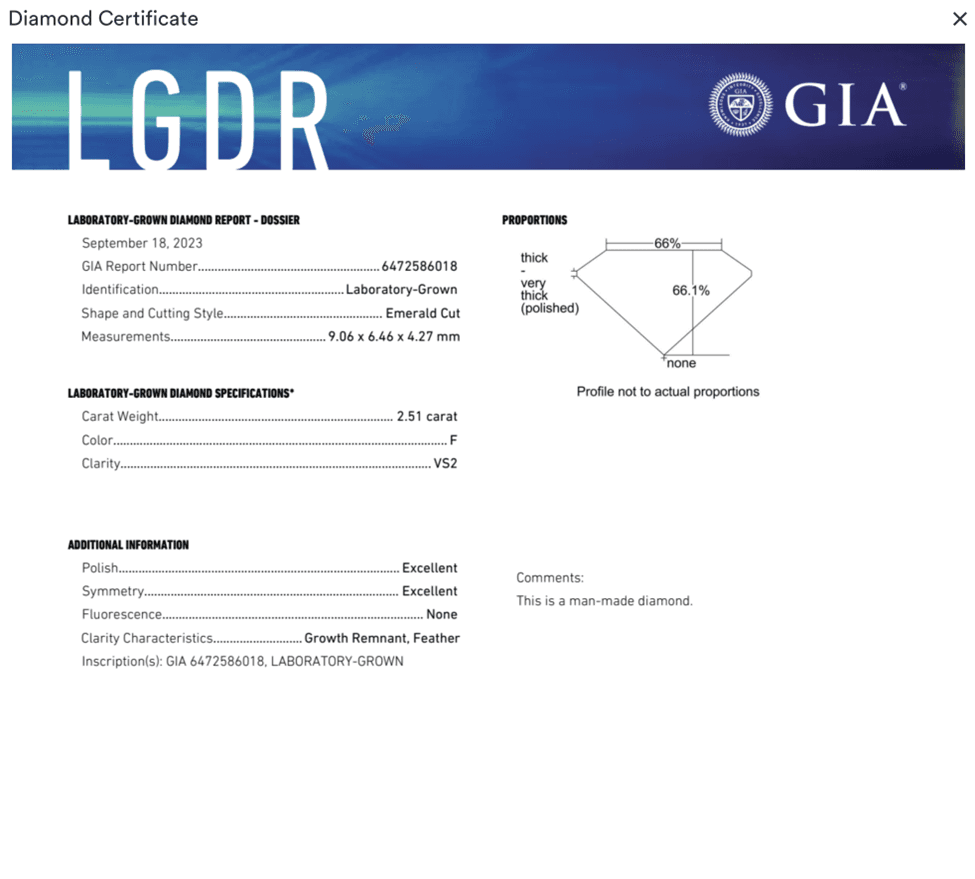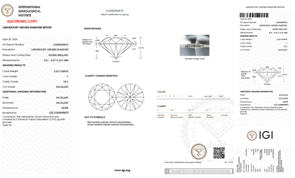 Because of the much lower price of lab grown diamonds, Brilliance offers most certificates from the International Gemological Institute, IGI.