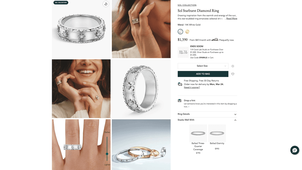 Being able to navigate a website with 400,000 diamonds and filter the ones a shopper wants to explore requires fast, first rate technology that works on your phone as well as it does on your laptop. Brilliant Earth’s cutting edge technology does both and their user experience is designed to be intuitive.