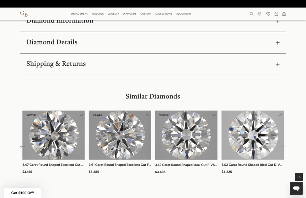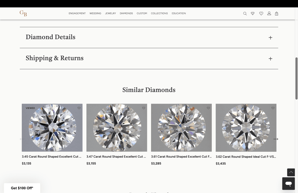 We were particularly impressed by the integrity of the similar diamond recommender tool. Consumers are all too familiar with pushy sales people in stores who care only about their commissions. Grown Brilliance really earned our trust when we selected this D IF 3.17 carat diamond for a whopping $13,945! And their similar diamond tool came back with these diamonds for less than $3,500.