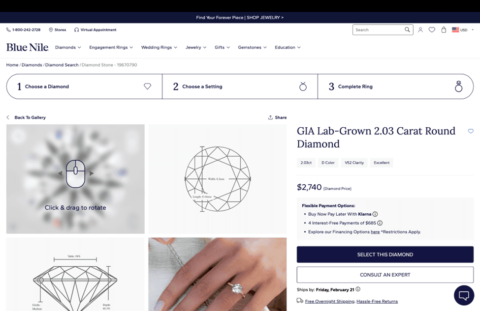 Best online diamond viewing technology and ease of purchase