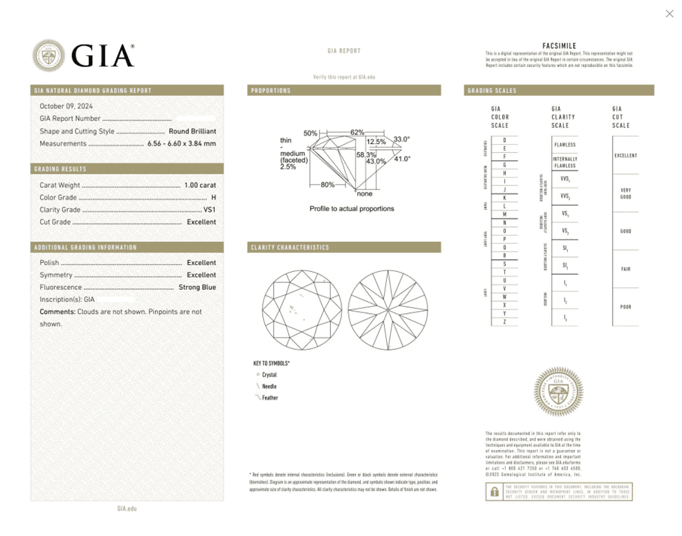 Our Editor and our team of experts have produced a detailed analysis of the different natural diamond cuts and shapes offered by James Allen and the percentage that are GIA certified on February 13. 2025. Here is a sample GIA GIA certificate we selected randomly from the James Allen online diamond store:
