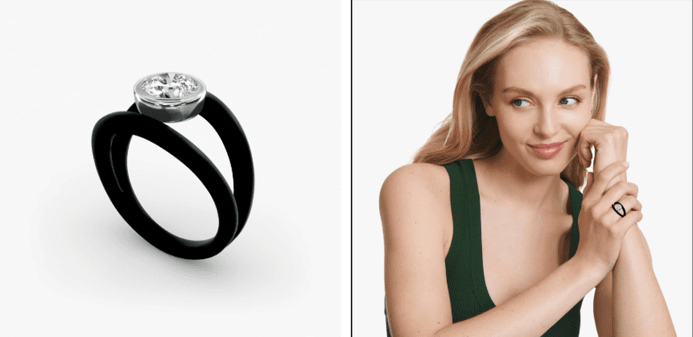 to the cutting edge ‘Black and White Gold Bezel Diamond Engagement Ring’