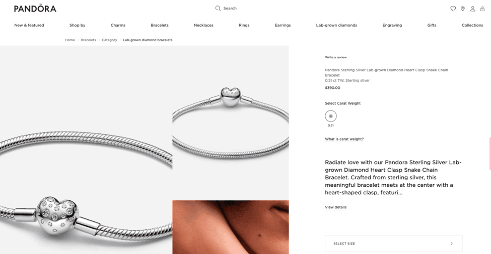 It should come as no surprise that the brand that sells more bracelets than any single company in the world understands to offer so many different sizes. And the price of $390 for a half carat of lab grown diamonds is truly an exceptional value.