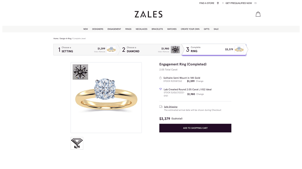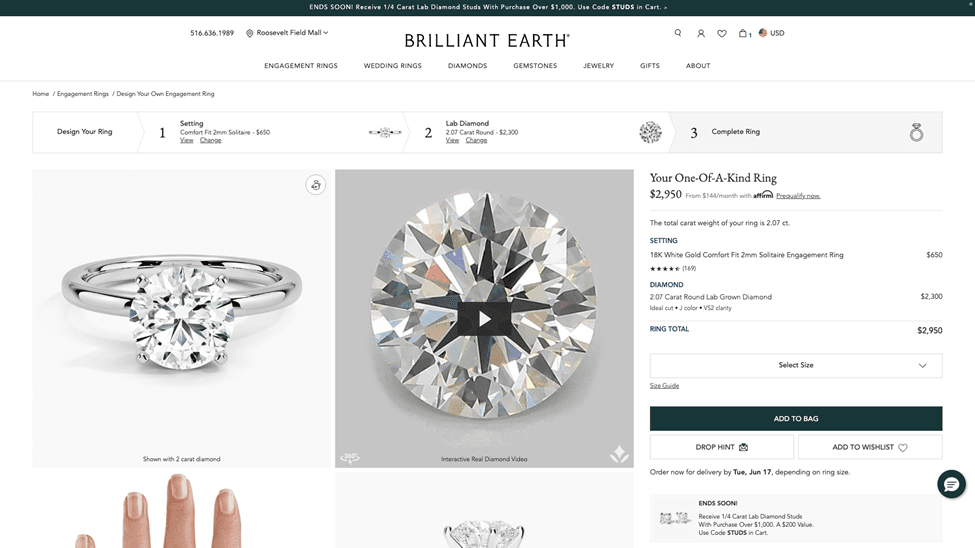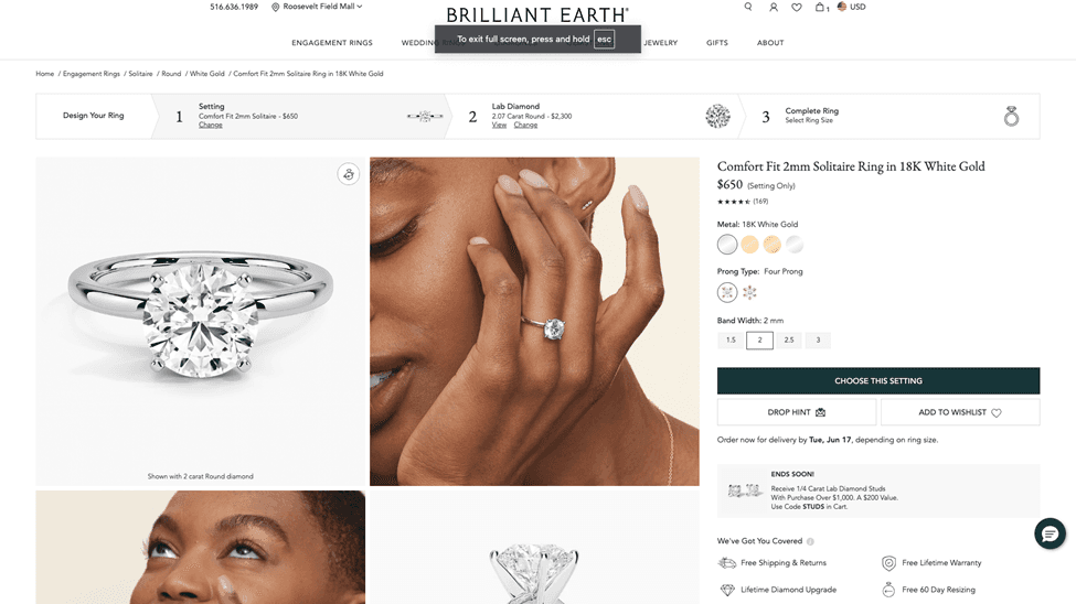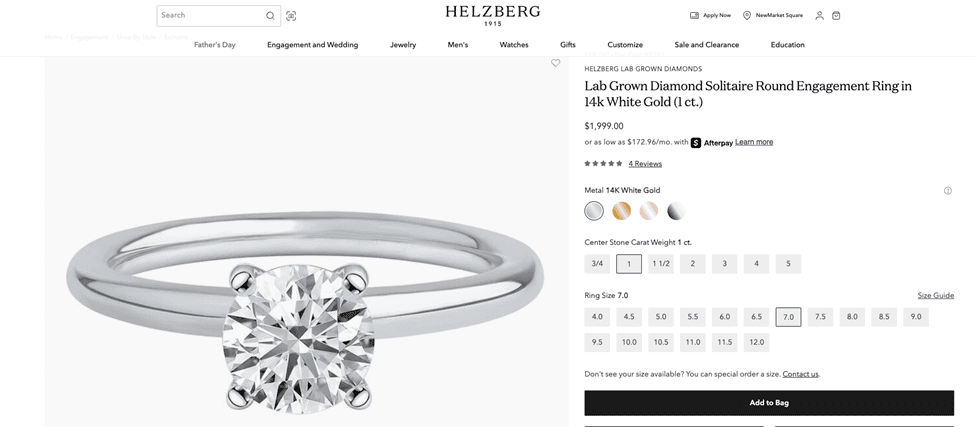 Similarly they are not an engagement ring store. They do not have countless styles from which to choose or customize. In fact, the entire lab grown diamond engagement ring category has a total of 35 rings. These are available in diamond sizes no larger than 2ct and in14kt white or yellow gold only. And all of the rings are essentially derivatives of only 7 unique designs.