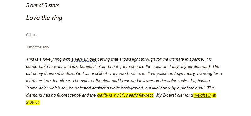 Purchasing a diamond or diamond engagement ring is a significant investment and can be intimidating and even frightening. Consumers often worry about making informed decisions and finding trustworthy retailers. When purchasing a product with which one is unfamiliar, it is important to invest the time to get educated on both the product, and the sellers of that product. A diamond engagement ring will symbolize a lifetime commitment and is a permanent display to friends, family and colleagues. The diamond, ring design, quality and the craftsmanship must meet or exceed all expectations. All data referenced in these reviews are as of the date of the review, we are not responsible for updating information as prices change constantly. Also, we are not compensated to write these reviews as they are independent of any given retailer or brand.