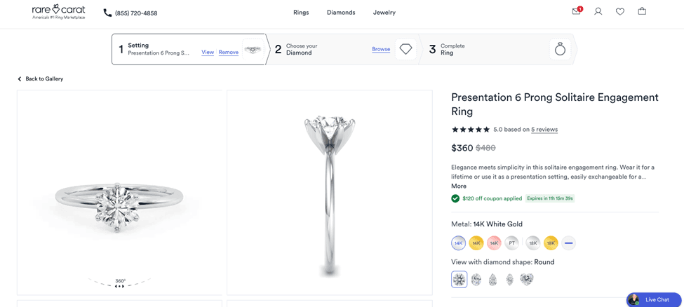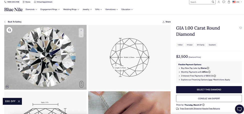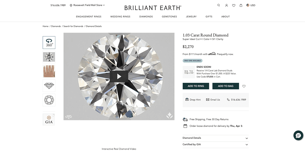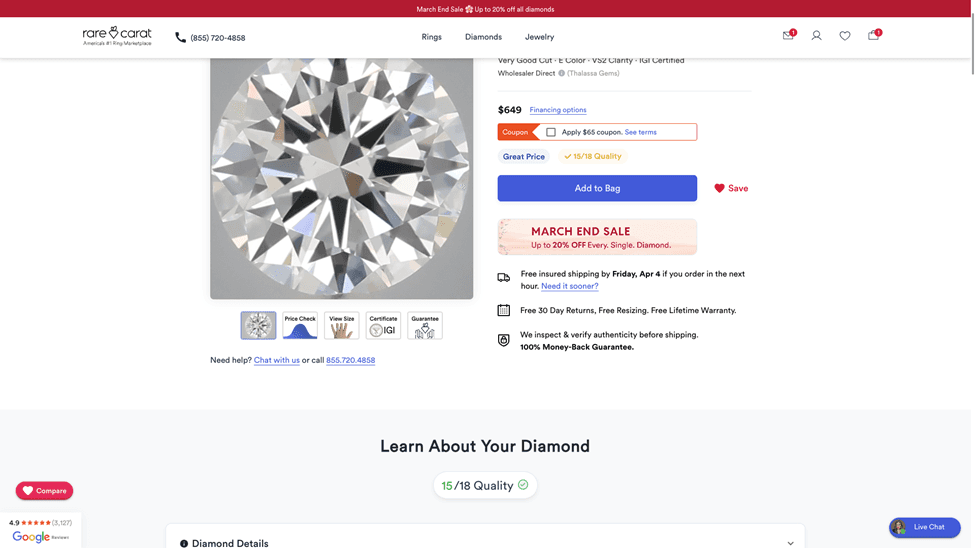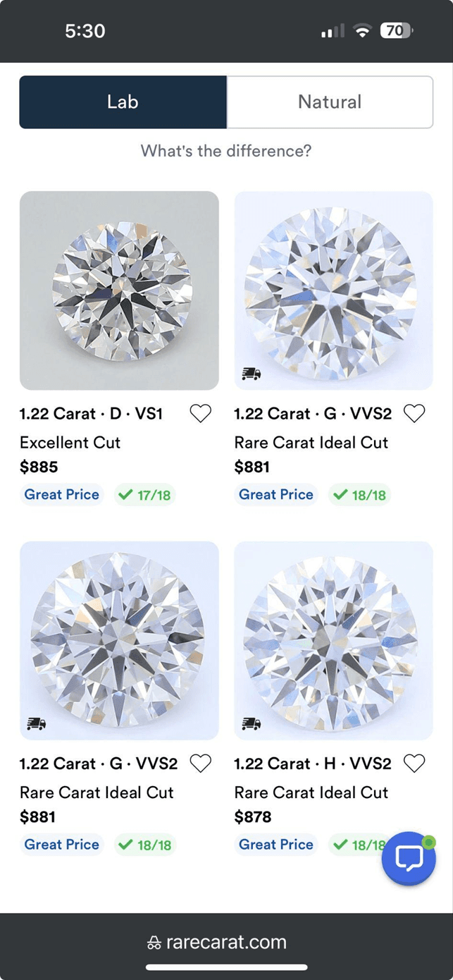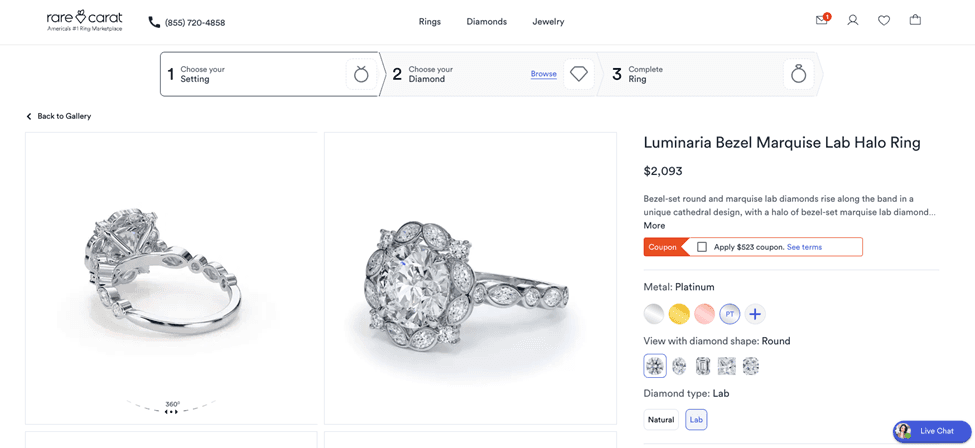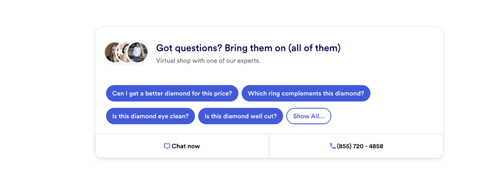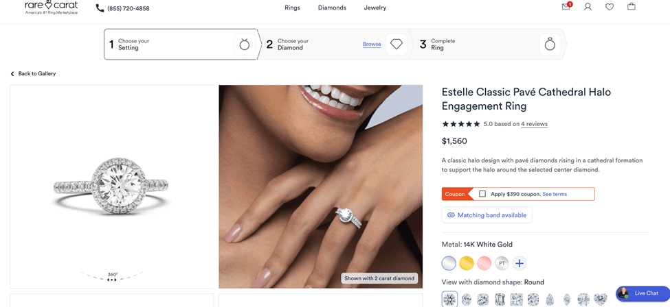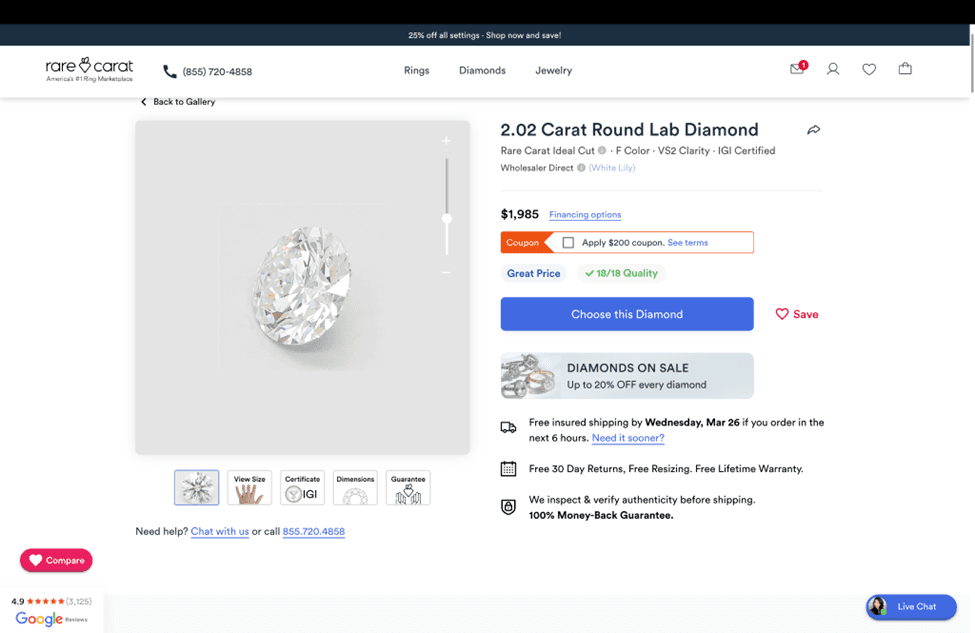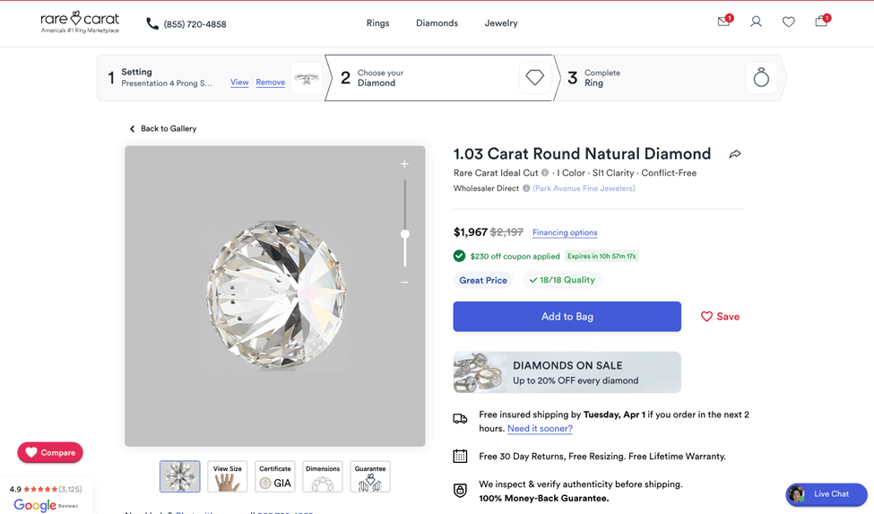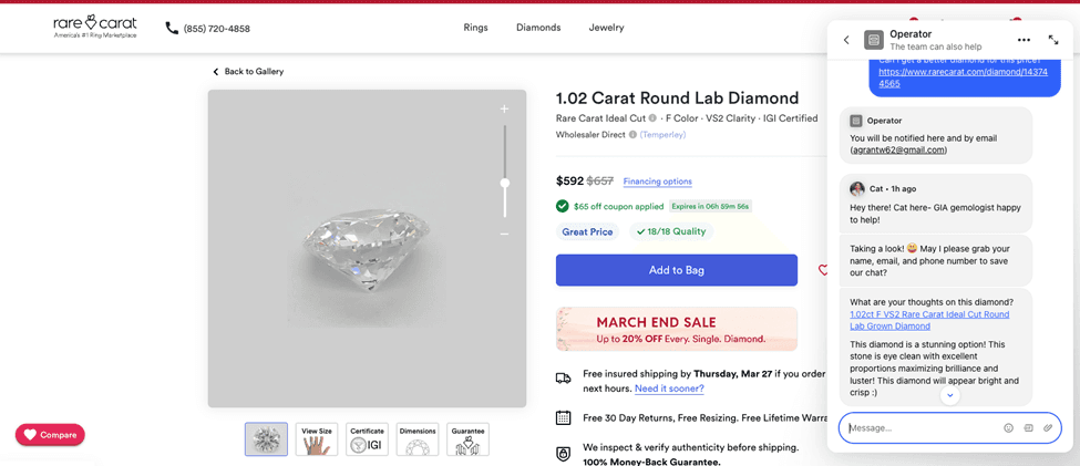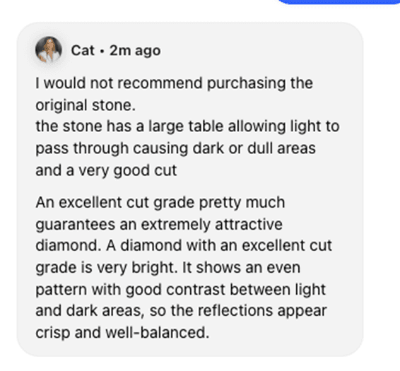 The seamless transition from AI to a live expert at just the right moment is one of the things consumers will come to appreciate most about Rare Carat. We will speak later about the gemologists at Rare Carat who offer the very best customer service we have encountered in all our surveys. What should be so important to shoppers is that Rare Carat deftly combines the best AI technology with the best people to make for an effortless shopping experience.