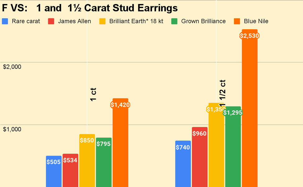 Rare Carat is the price leader in the stud earrings most consumers will want.