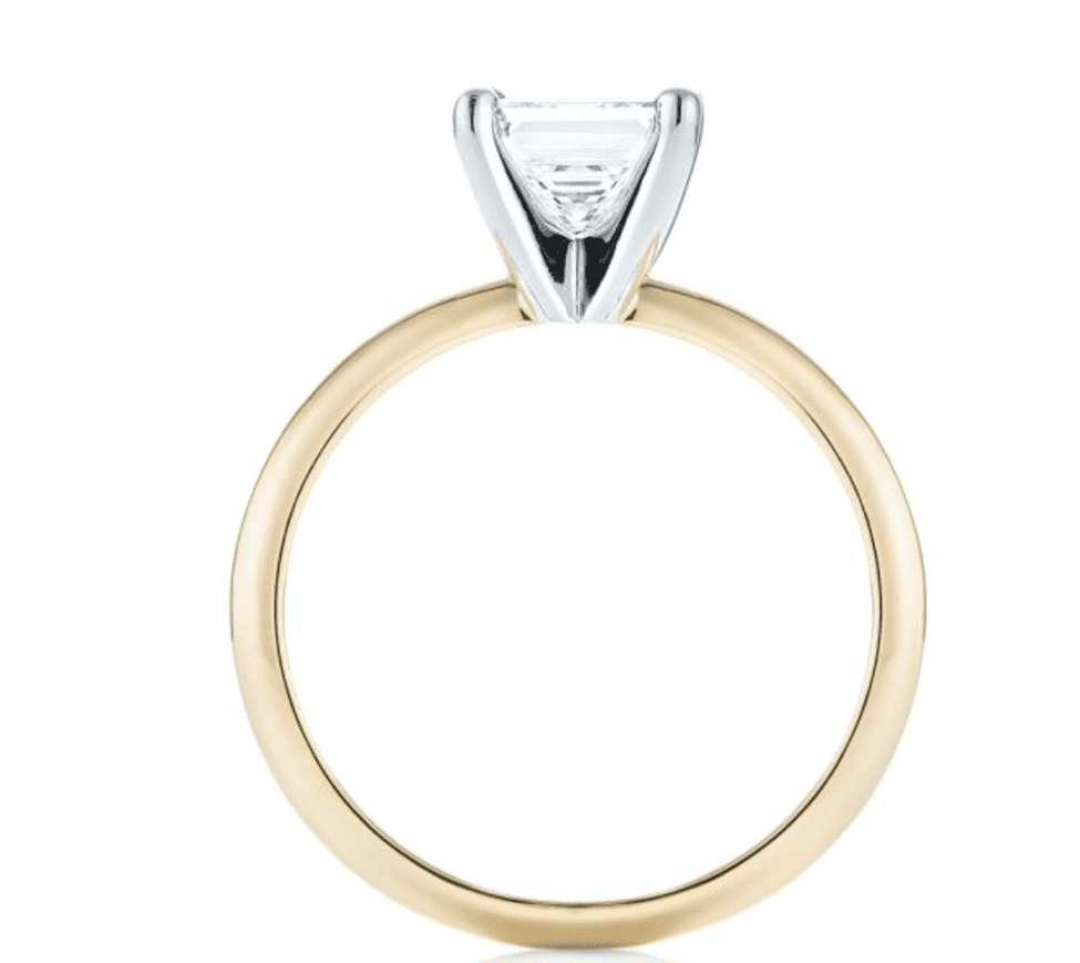 We loved the low set, one piece design of their solitaire. Most jewelers will use a much higher set diamond because it allows them to solder different ‘heads’ onto the same solitaire, for different size and shape diamonds, like this: