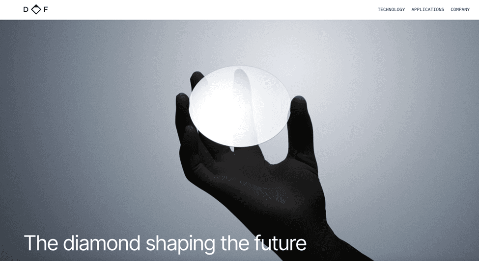 And here is the Diamond Foundry homepage today, a diamond technology company serving industrial applications of lab grown diamonds in the production of microchips.