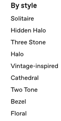 VRAI has a broad, deep and beautifully designed diamond engagement ring assortment of styles. The breadth and the sheer variety of unique and innovative collections and designs available on their site assures there is something for everyone. The manufacturing quality and craftsmanship of their rings meets or exceeds the very high standards of our Editor by all criteria. Well, in full disclosure, many of them are hand crafted by former partners of his from several decades ago. VRAI’s intuitive and user-friendly filtering technology makes it easy for couples shopping for a diamond engagement ring to explore and discover the perfect design to forever symbolize their love. They have divided their designs into 9 high level categories: